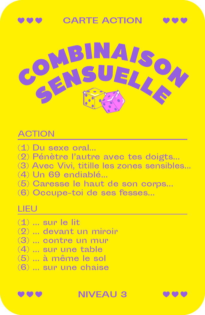Pas de points, pas d’échec : votre but tout au long du jeu sera de recevoir ou de donner du plaisir (pas besoin d’arriver au bout de la partie, bien au contraire…) 🥵
